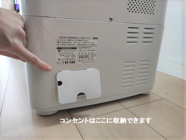 シュルル~っと巻き取るタイプではないですが、コンセント線をすべてこの中に丸めて入れておくことができるので