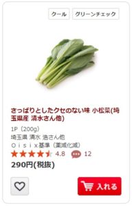 オイシックスで届いた小松菜えぐみがなくて美味しかった。